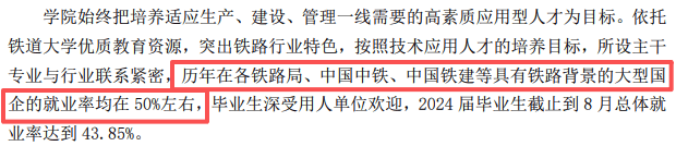 学校最新发布的本科讲授质量演讲明白提到:积年正在各铁局、中国中铁、中国铁建等具有铁布景的大型国企就业率均正在50%摆布!